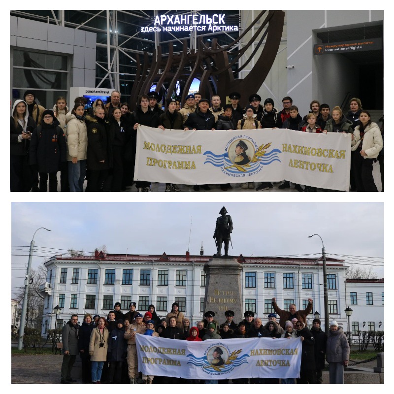 В рамках Молодежной программы «Нахимовская ленточка-2025» команды образовательных учреждений города Москвы («Школа №1383», «Школа №1568 имени Пабло Неруды», «Школа №2030», «Школа №1161», «Школа №56 имени академика В.А. Легасова», Колледж Академии водного транспорта имени министра речного флота Л.В. Багрова РУТ МИИТ), совершили поездку с 17 по 19 октября 2025 года по экскурсионно-образовательному маршруту: Москва-Архангельск-Северодвинск-Москва, с посещением памятных мест, связанных с биографией адмирала Павла Степановича Нахимова.